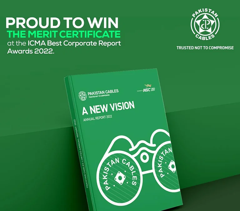 Pakistan Cables Annual Report 2022 receives the ICMA Merit Certificate presented by the ICMA Best Corporate Report Awards.